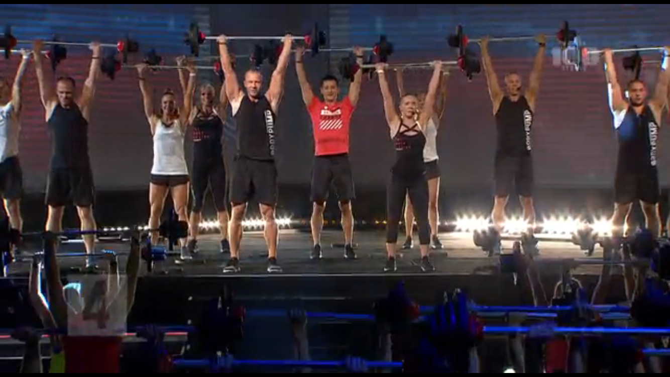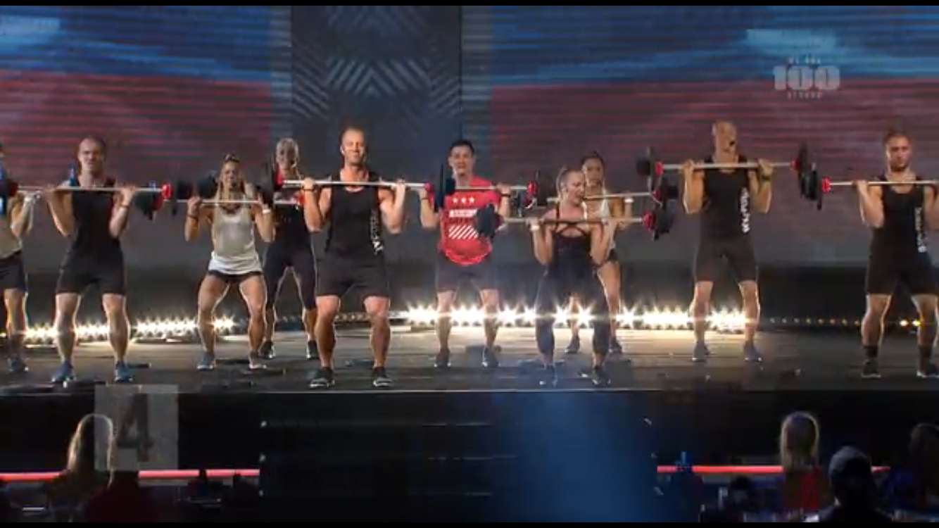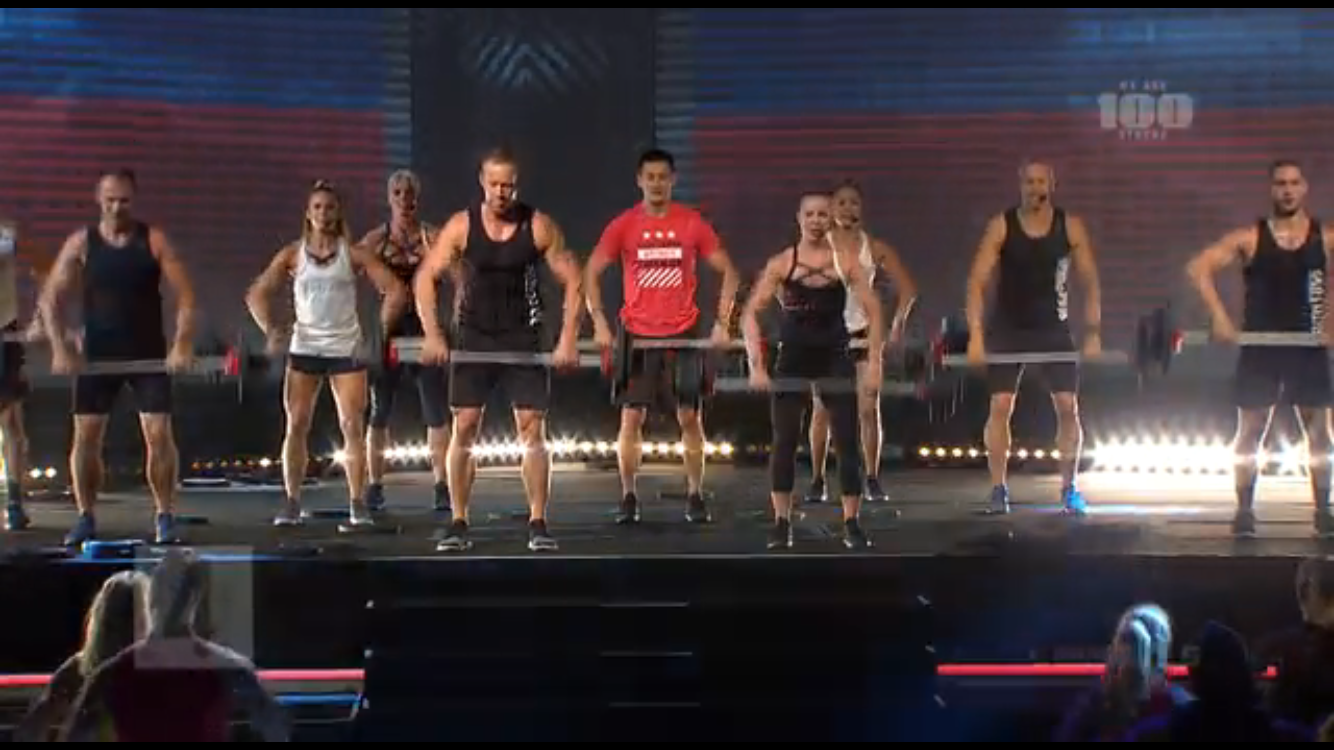 ボディパンプの花形種目とも言うべきトラック4の「クリーン&プレス」。オリンピックのウェイトリフティングでもよく見かける重量挙げ動作をパンプにアレンジ。背中の種目でもありますが、バーをキャッチ・プッシュ・キャッチすることにより、全身の筋力を満遍なく使用することから、他の種目と比較して瞬間の消費カロリーが非常に高い動作です。なので、慣れてきたら重量は少しづつでも上げていくべきです。